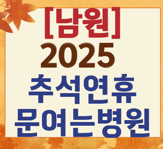 아래는 남원시에서 추석 연휴 동안 운영하는 주요 병원 정보입니다.