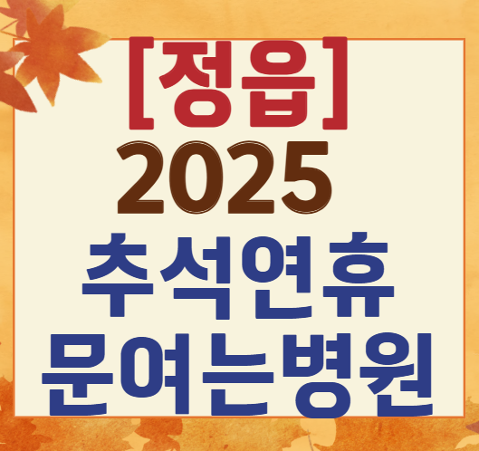 정읍시에서 명절 기간 동안 진료 가능한 병원과 의원 정보를 정리했으니, 필요할 때 빠르게 확인하시길 바랍니다.