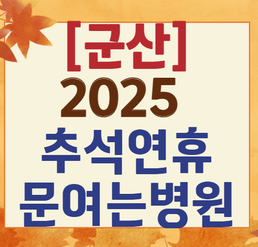 추석 연휴에는 대부분 병·의원이 문을 닫지만, 군산에서는 내과, 한의원, 정형외과 등 일부 병원이 휴일 당직 또는 연장 진료를 운영합니다.